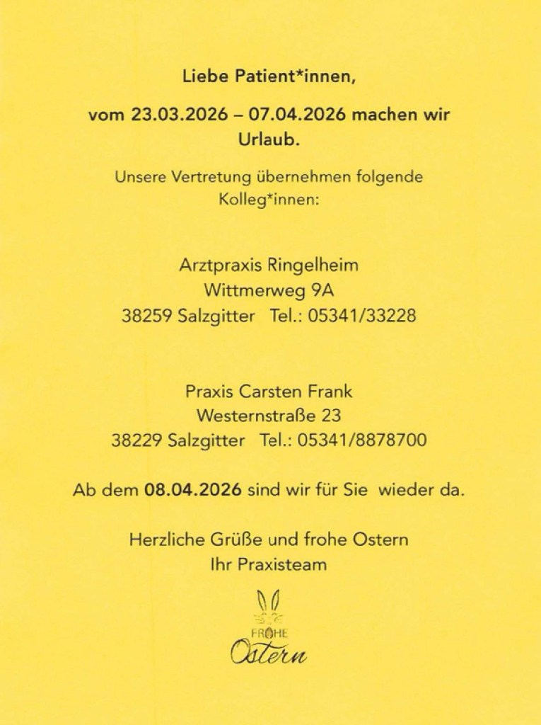 In dringenden Fällen wenden Sie sich bitte an den KV-Notdienst (Tel.: 116 117) oder den Rettungsdienst (Tel.: 112)